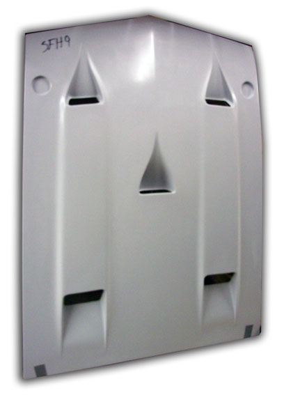Reproduction of the original fiberglass hood with 5 scoops. Has built in ram air chamber.Important Note Regarding Fiberglass Parts: All fiberglass parts will require fitting, preparation, painting, and finish work prior to being installed on the car. They are NOT sold as a finished "ready to install" part. Please consult with your body shop for information.