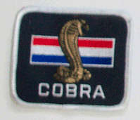 2 3/4" x 3 1/4" square jacket patch. Cobra snake with Shelby American's red, white and blue background with a blue border along with 'Cobra' lettering. This is from the 1969-71 Era. Price each.